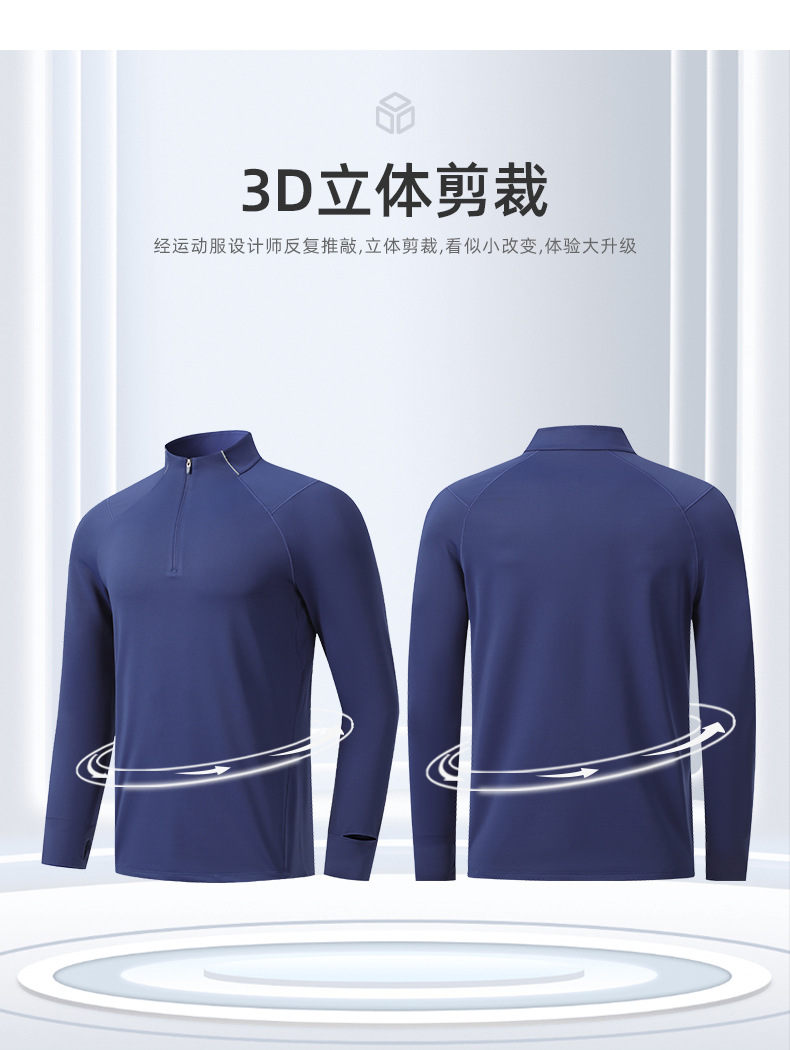2025秋季新款速干衣T恤男女吸湿训练健身服半开拉链运动跑步长袖