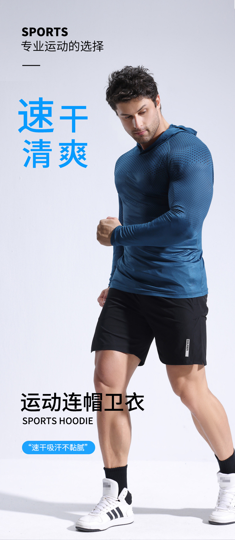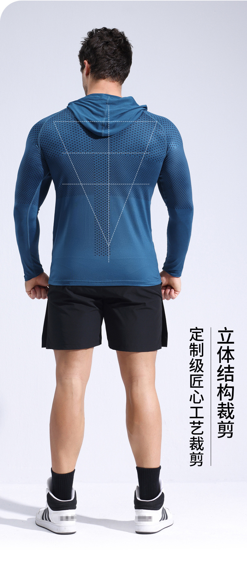亚马逊跑步运动美体暴汗速干衣紧身长袖连帽健身服男
