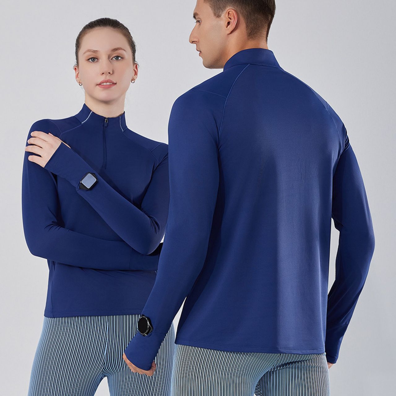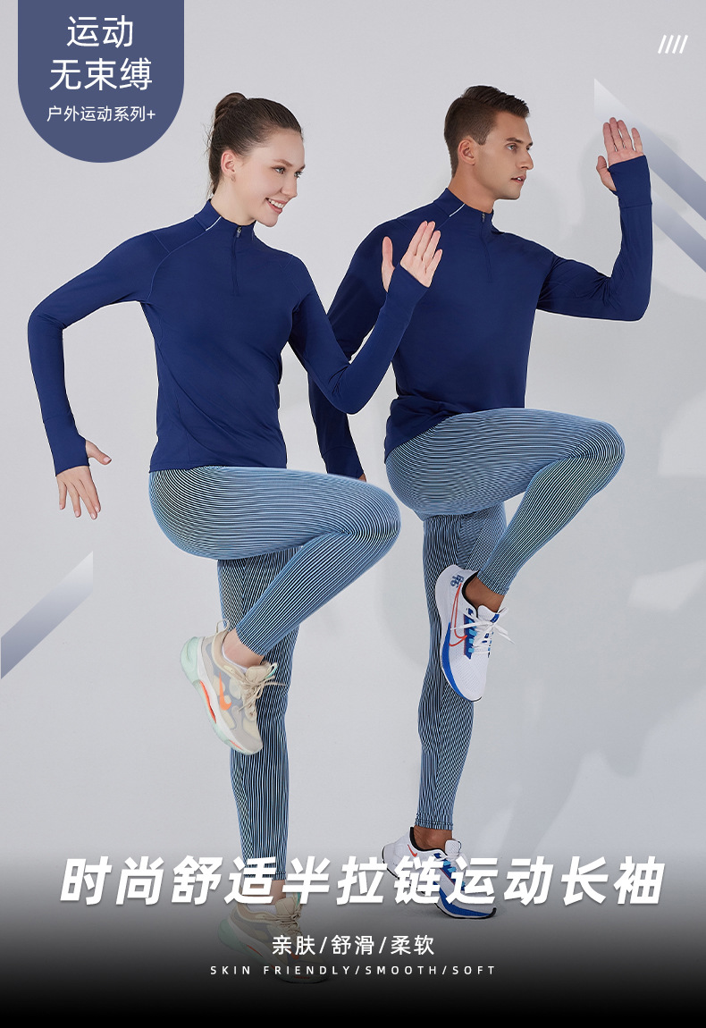 2025秋季新款速干衣T恤男女吸湿训练健身服半开拉链运动跑步长袖