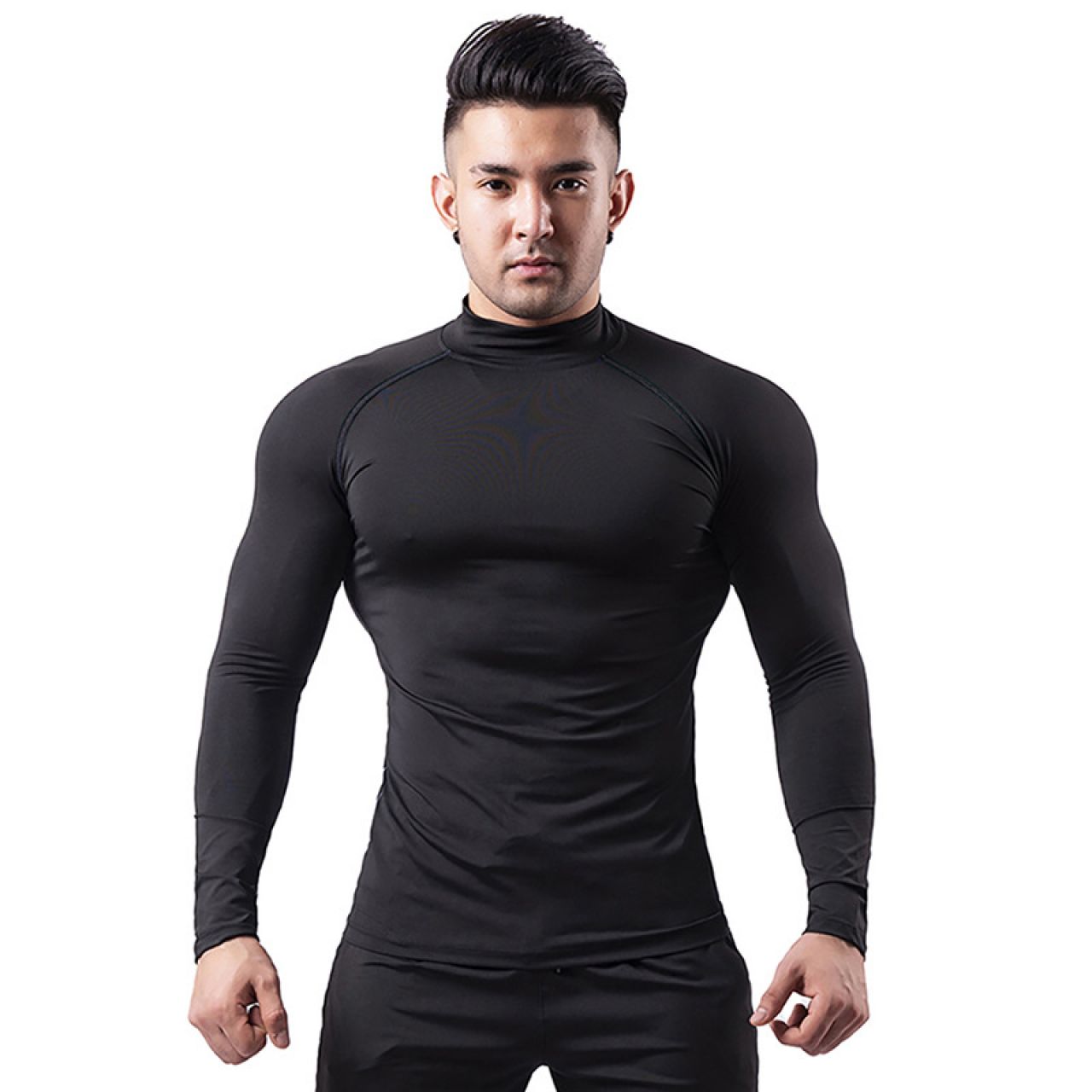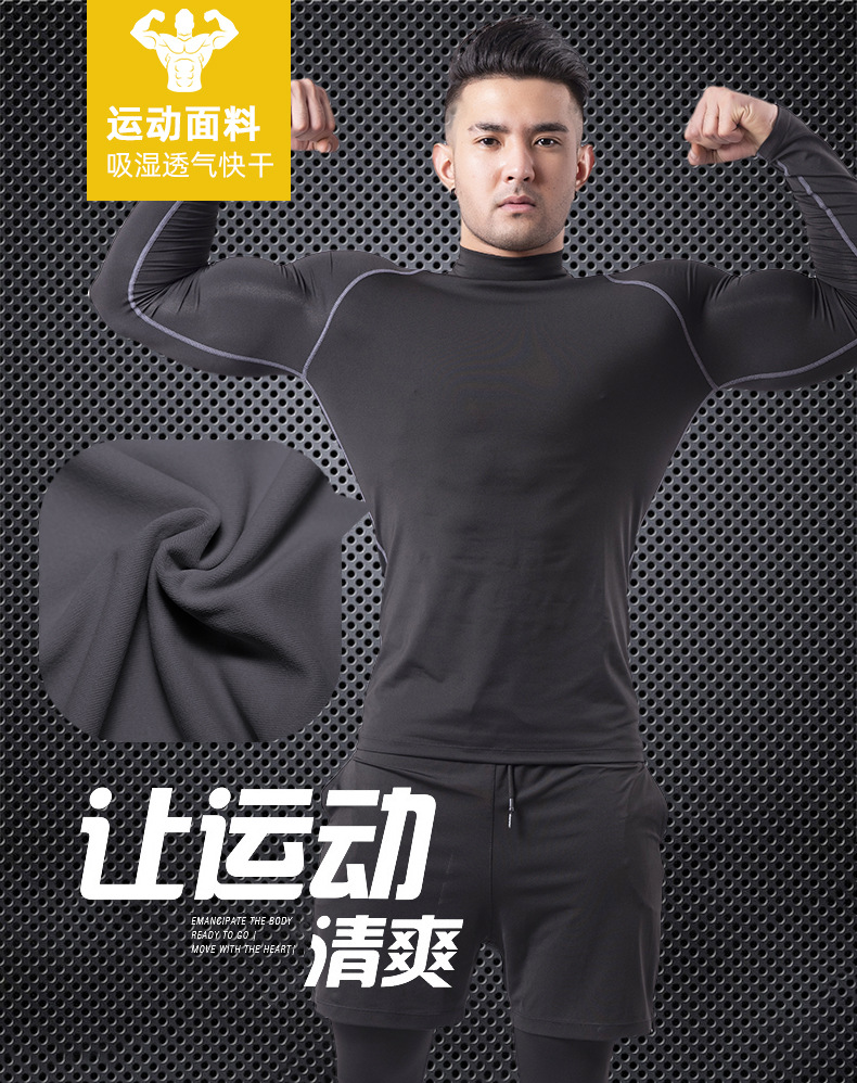 丝格图跨境半高领健身服男冬季加绒保暖运动紧身衣训练跑步打底衣