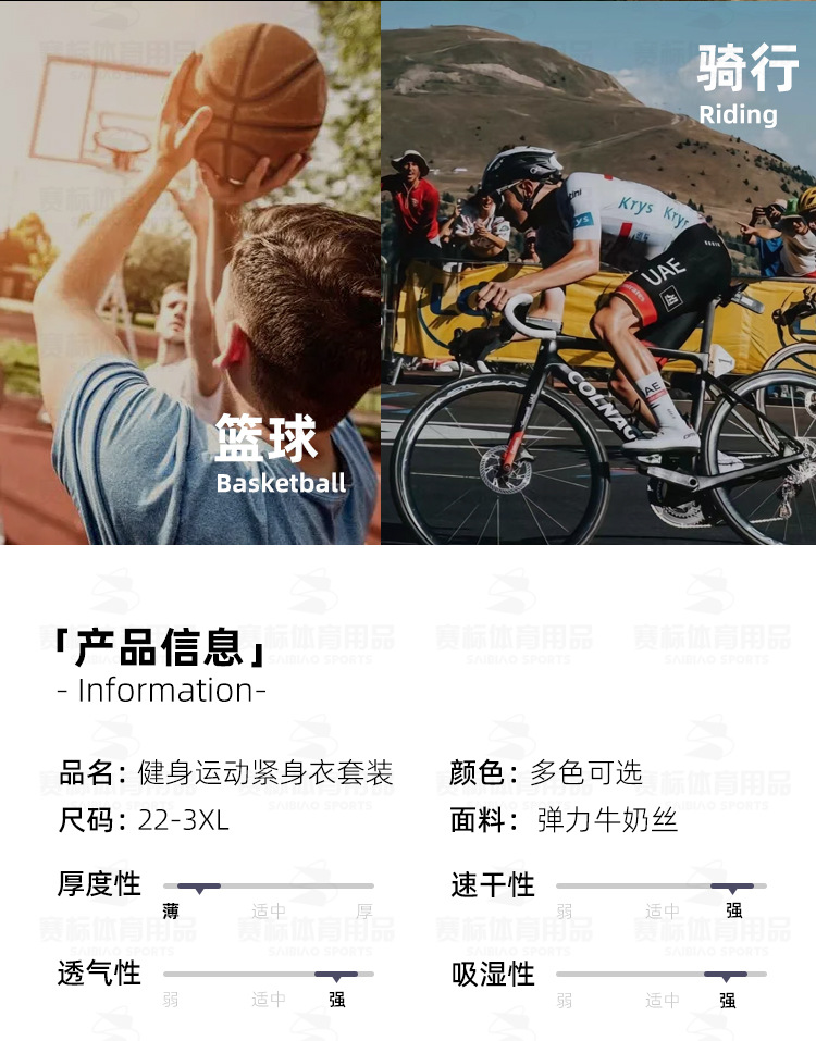 春夏季高弹运动紧身衣训练服男生跑步速干衣打底衫跨境健身服套装