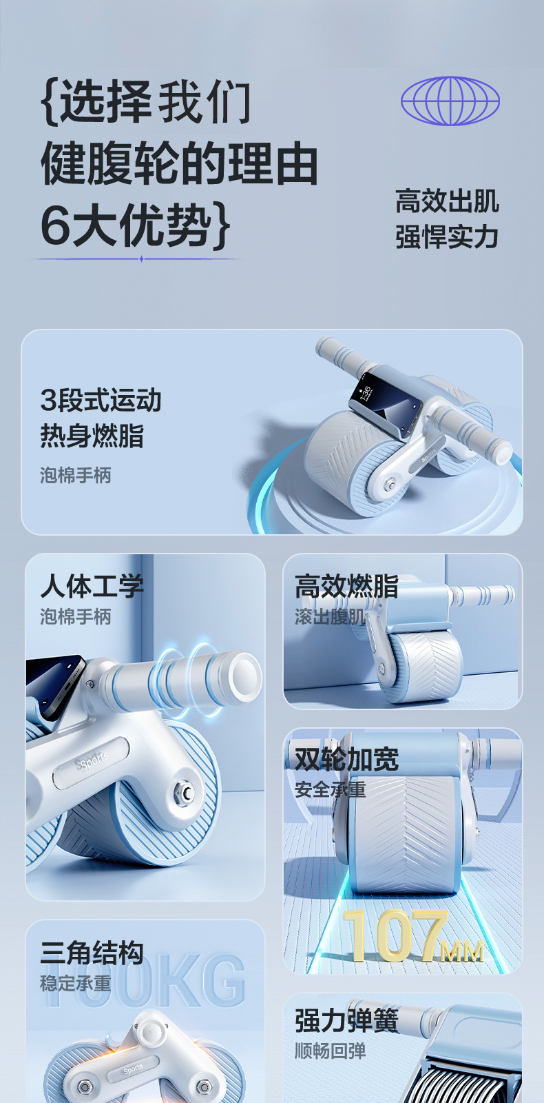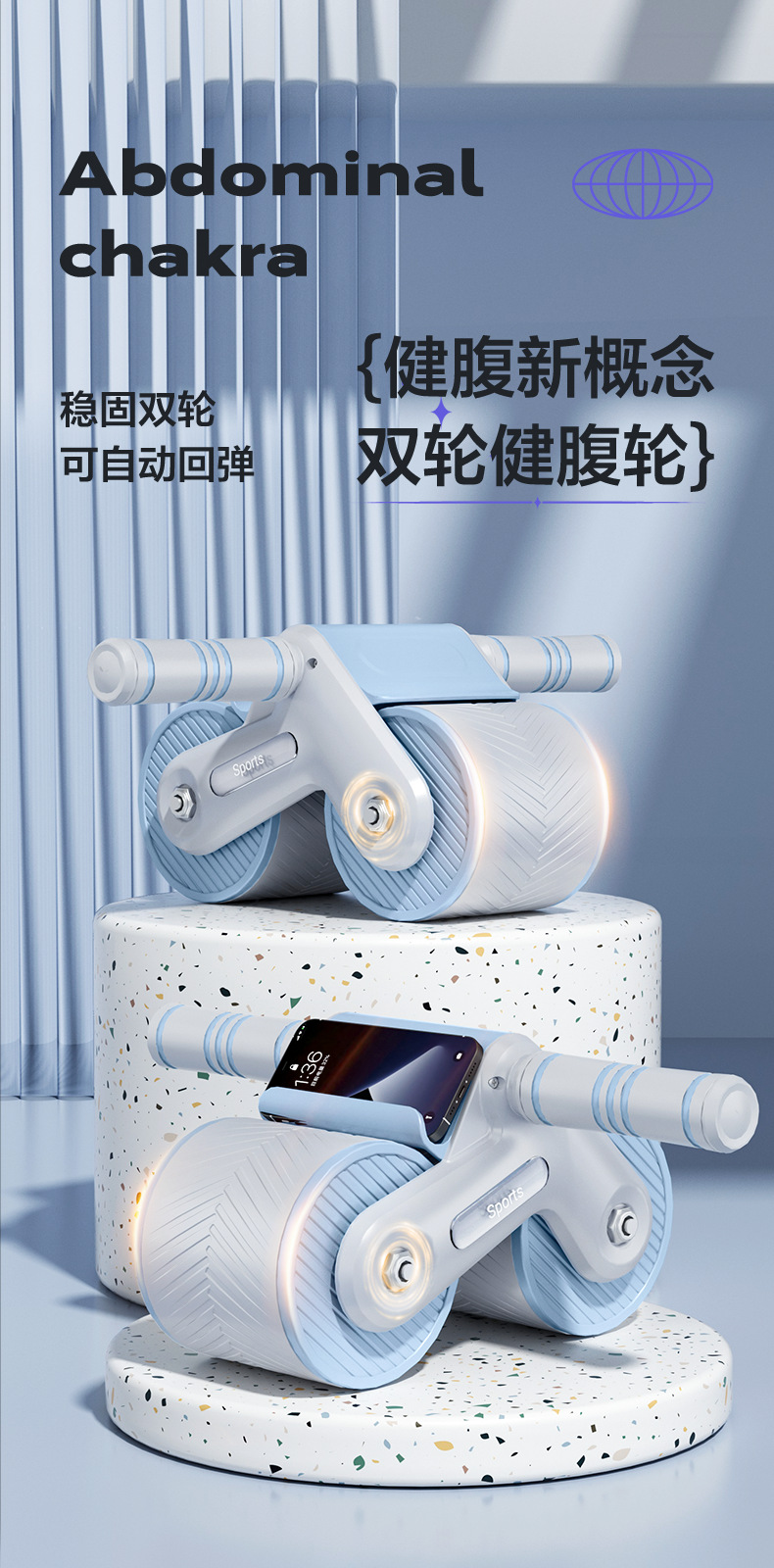 跨境健腹轮自动回弹腹肌轮家用健身器材卷腹神器腹肌轮